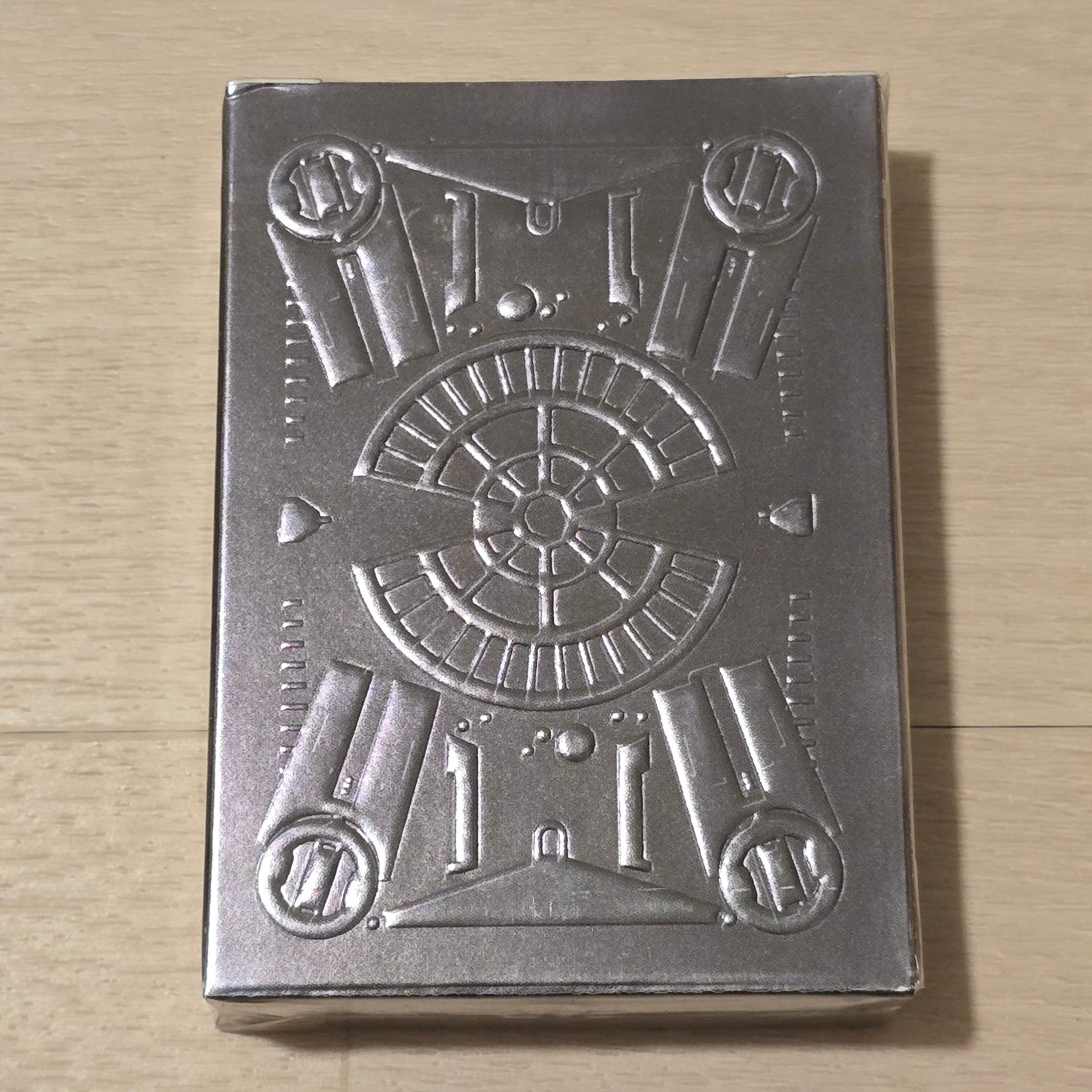 DeckONE playing cards are a classic deck with a very mechanical look, designed by Homer Liwag. With over 30 years of experience in the television and film industries, Liwag was inspired by production design and concepts that led him to dream up a deck that would appear industrial and distressed. Most impressive is the deck’s tuck box, made out of thick metallic cardstock that makes the box look like an impressive steel case.