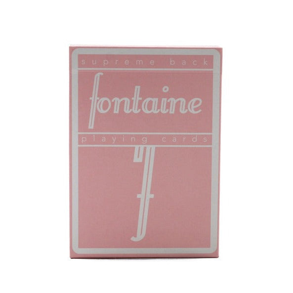 Pink Fontaines will be printed on Bicycle stock with linen finish by the United States Playing Card Company. Fontaines come with standard faces, a Fontaine Ace of Spades, two Fontaine jokers, a blank faced card and an ad card.